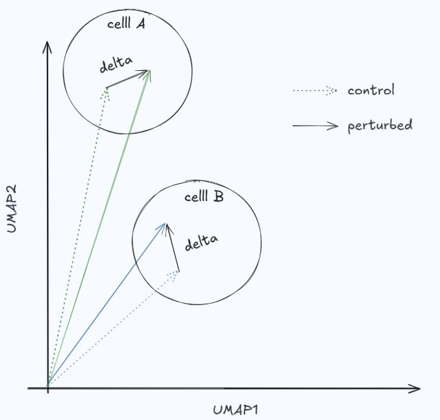 In perturbation studies, what we care about is the differential effect: the change relative to an unperturbed (or matched control) state. Raw expressions mostly reflect cell identity, and in many settings the perturbation effect is comparatively small (Fig. 3). If a metric evaluates predictions in raw expression space, it can reward models for predicting baseline identity rather than perturbation response—artificially inflating scores and encouraging “do nothing” behavior. A simple no-change baseline (predict the control) is a useful sanity check here: if it scores surprisingly well, the metric is likely not measuring the perturbation biology you care about.